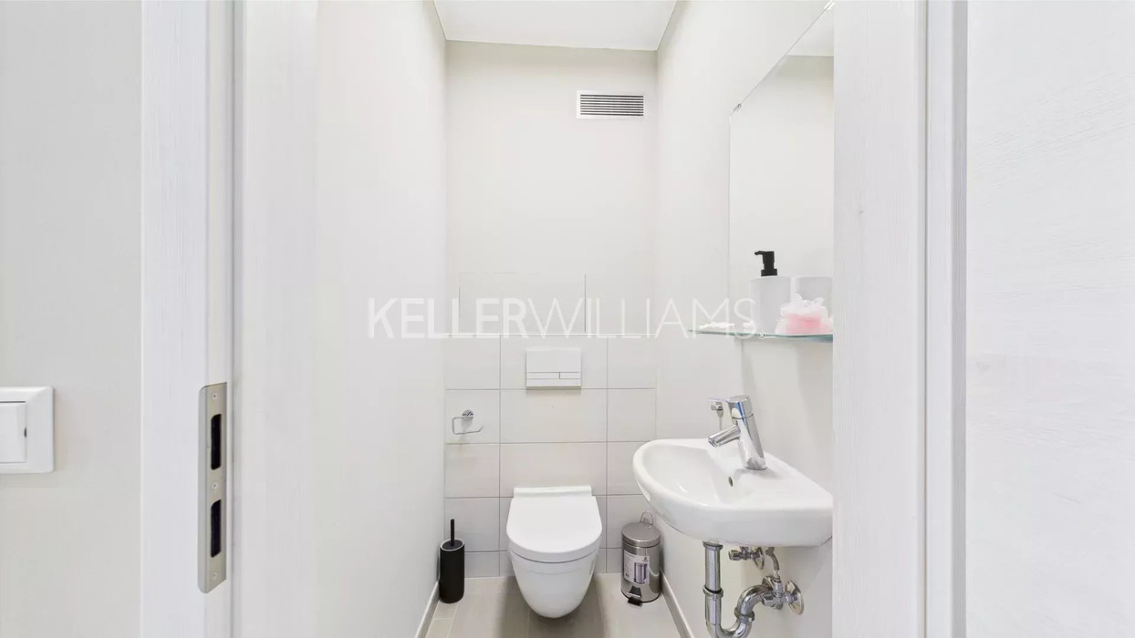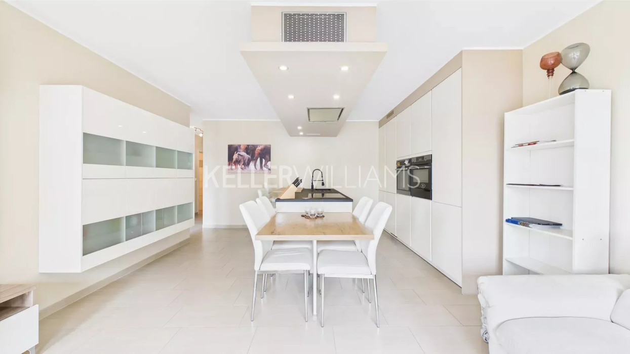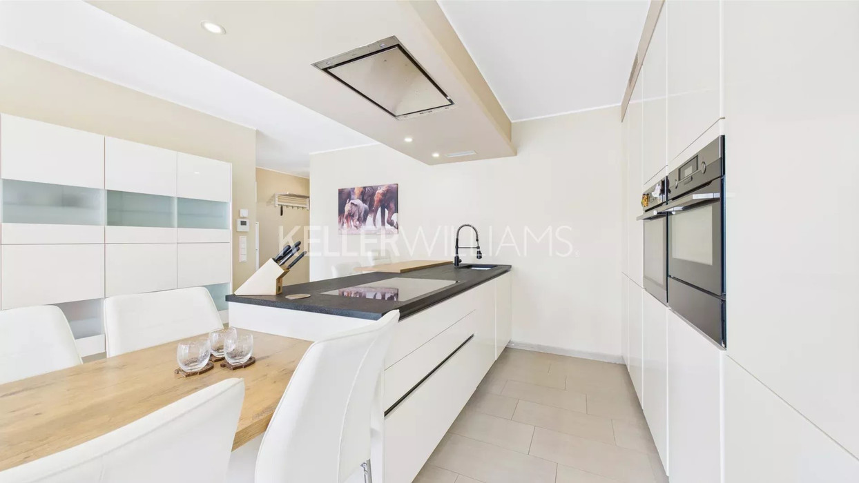 - Espace de vie lumineux d’approximativement 38 m², avec séjour, salle à manger, cuisine équipée ouverte et accès sur le balcon;