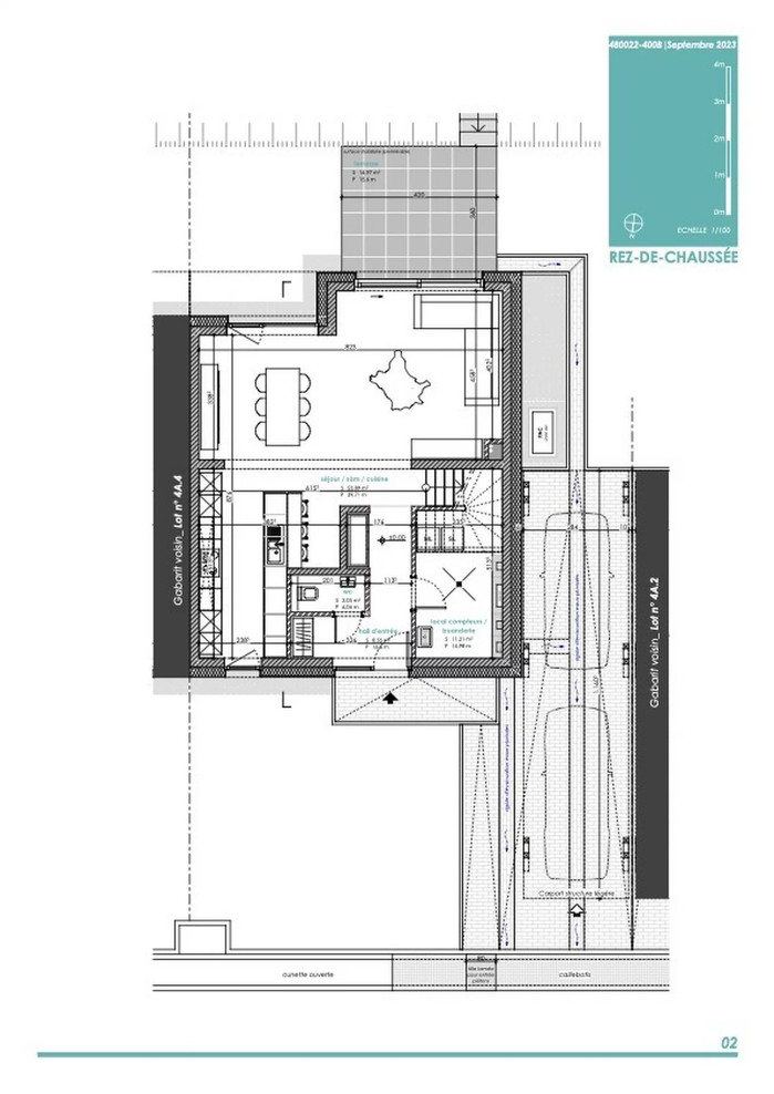The main façade features a pedestrian entrance and access to the shared garage. The residence comprises a basement, first floor and two upper floors. The basement houses the private parking spaces, cellars, communal areas and other technical rooms. The upper floors and first floor are reserved for residential use or any other use permitted by the relevant by-laws.