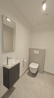 Salle de bains avec sanitaires complets et mobilier sur mesure WC séparé et débarras